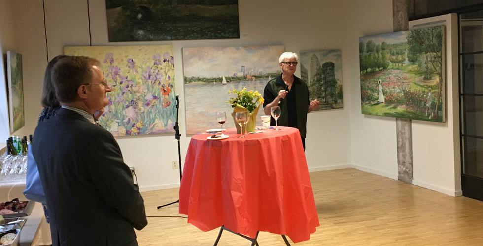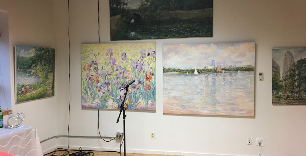 On June 15, 2019, PAMSM (Polish American Medical Society of Minnesota) celebrated the bond between Poland and France with a special event. The occasion marked the opening night of an exhibition featuring the impressionist paintings of Antoni Beltowski at Alliance Française Mpls/St. Paul. Despite the stormy weather, around forty people attended the reception, creating a warm and lively atmosphere. The paintings on display captured the beauty of the Twin Cities parks and skyline throughout the seasons, with their vibrant colors standing out against the cloudy backdrop.